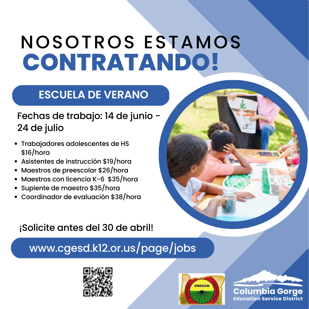We're hiring for Migrant Summer School! Accepting applications through April 30th. Check out all the roles at https://www.cgesd.k12.or.us/page/jobs